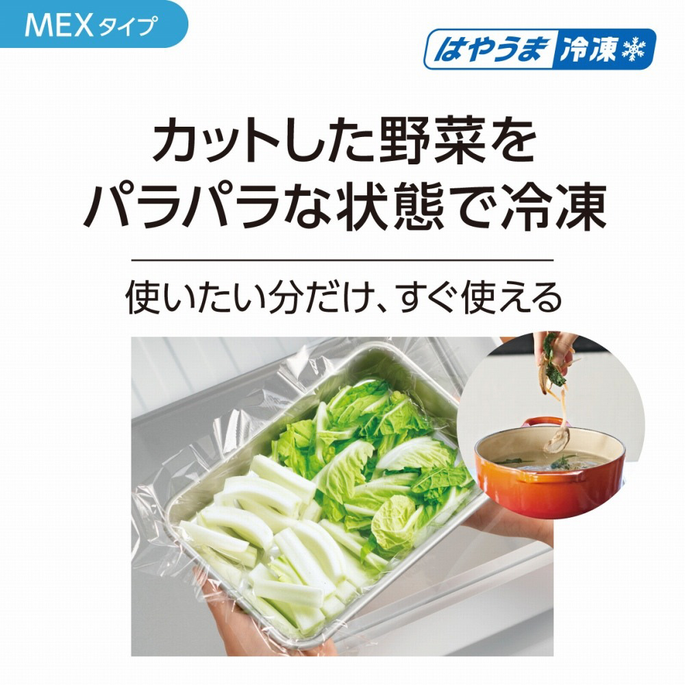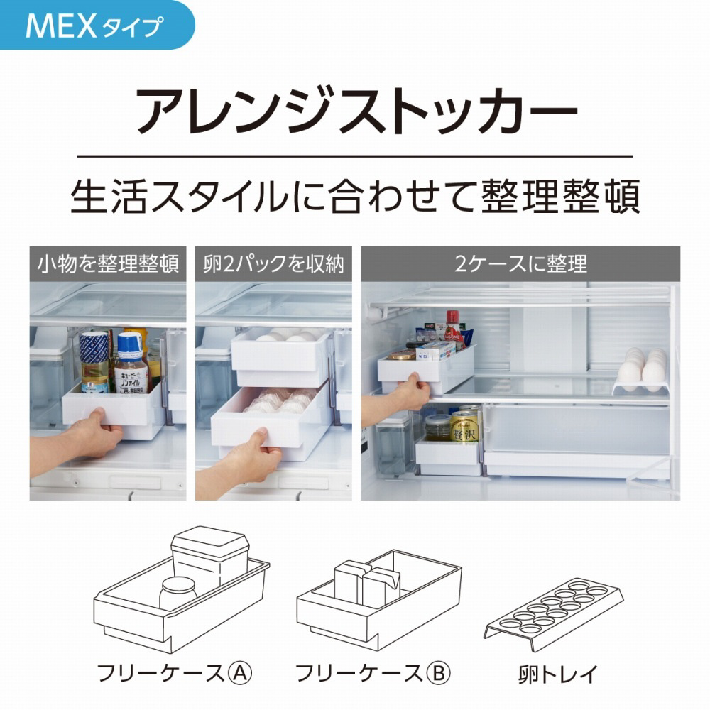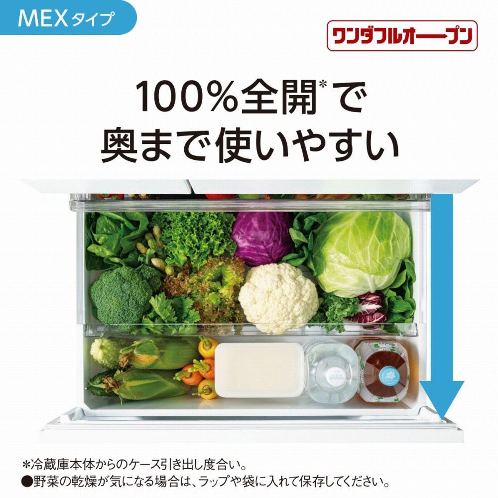 手の届きやすいエリアの使いやすさにこだわった「野菜室が真ん中」タイプ。