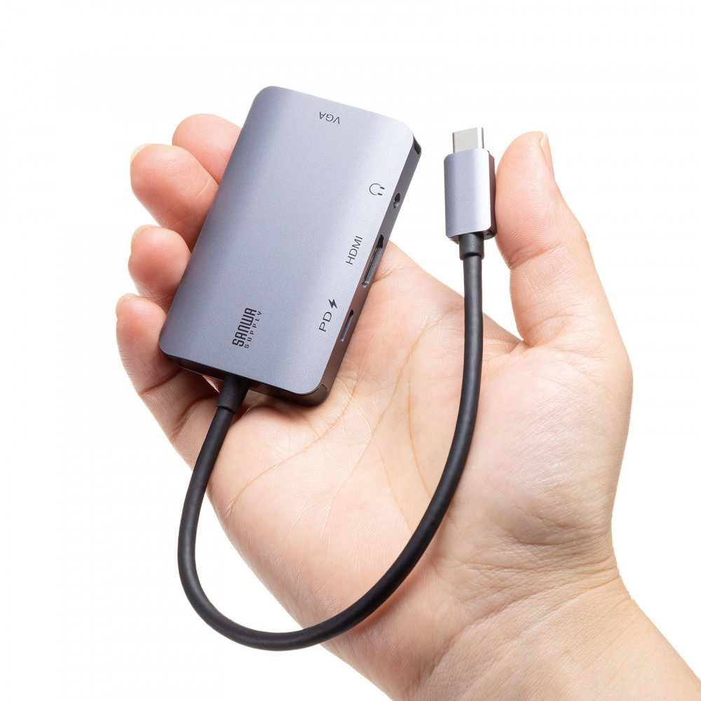 [USB-C オス→メス HDMI / VGA /φ3.5mm / USB-C] USB PD対応 100W ドッキングステーション AD-ALCHV02 [USB Power Delivery対応]