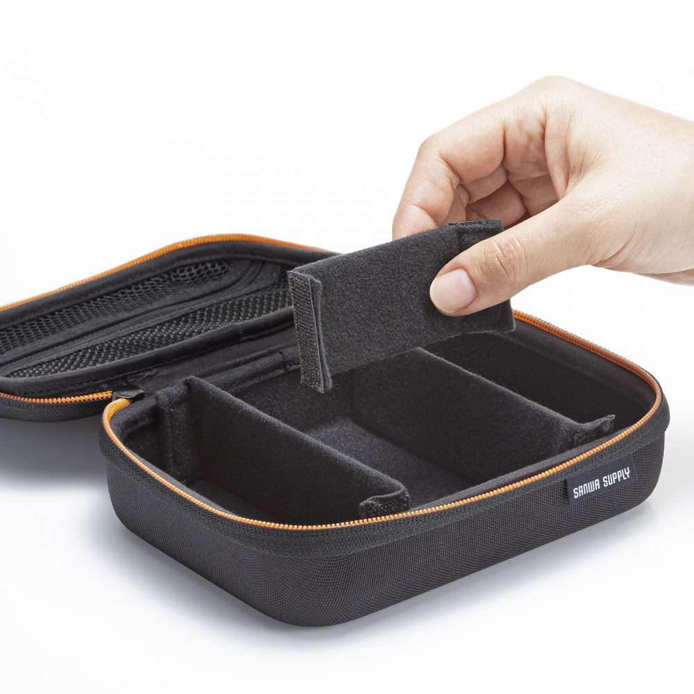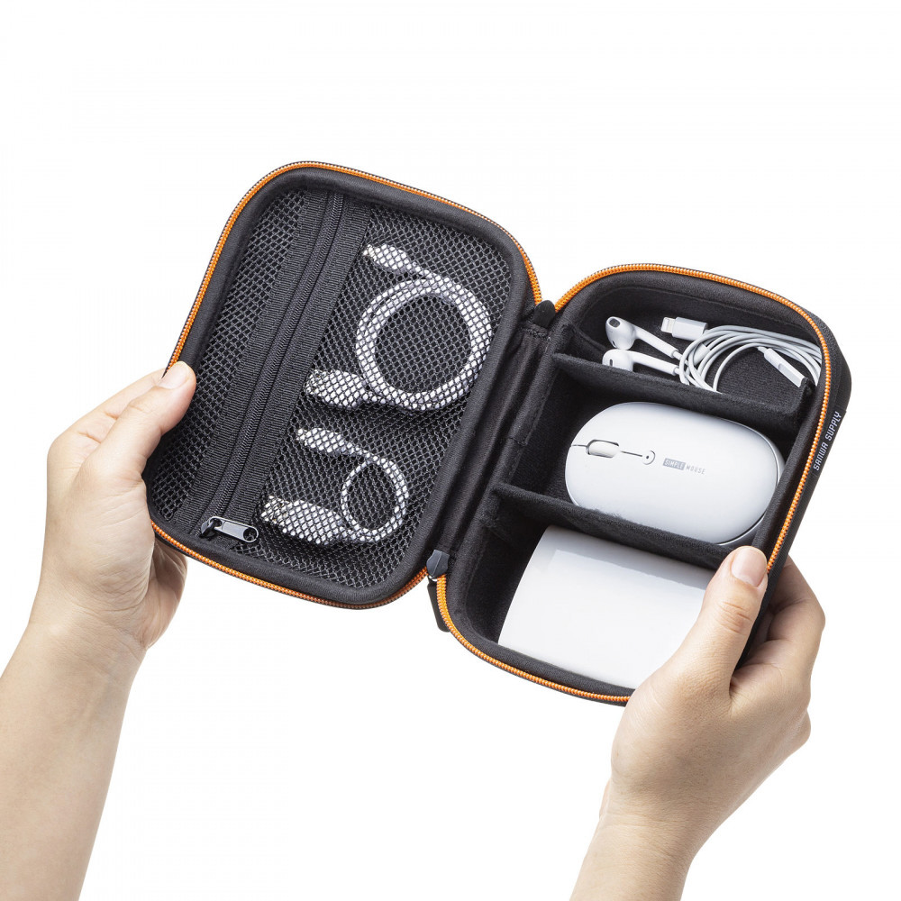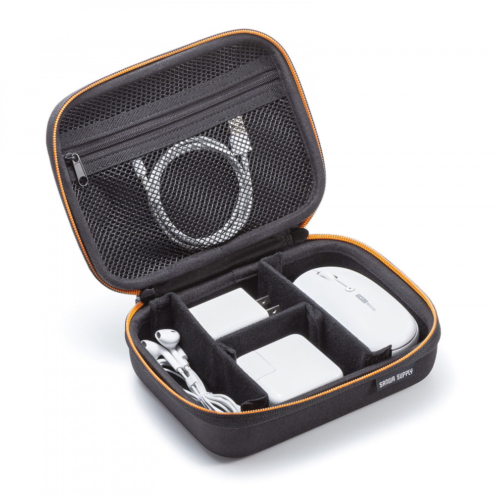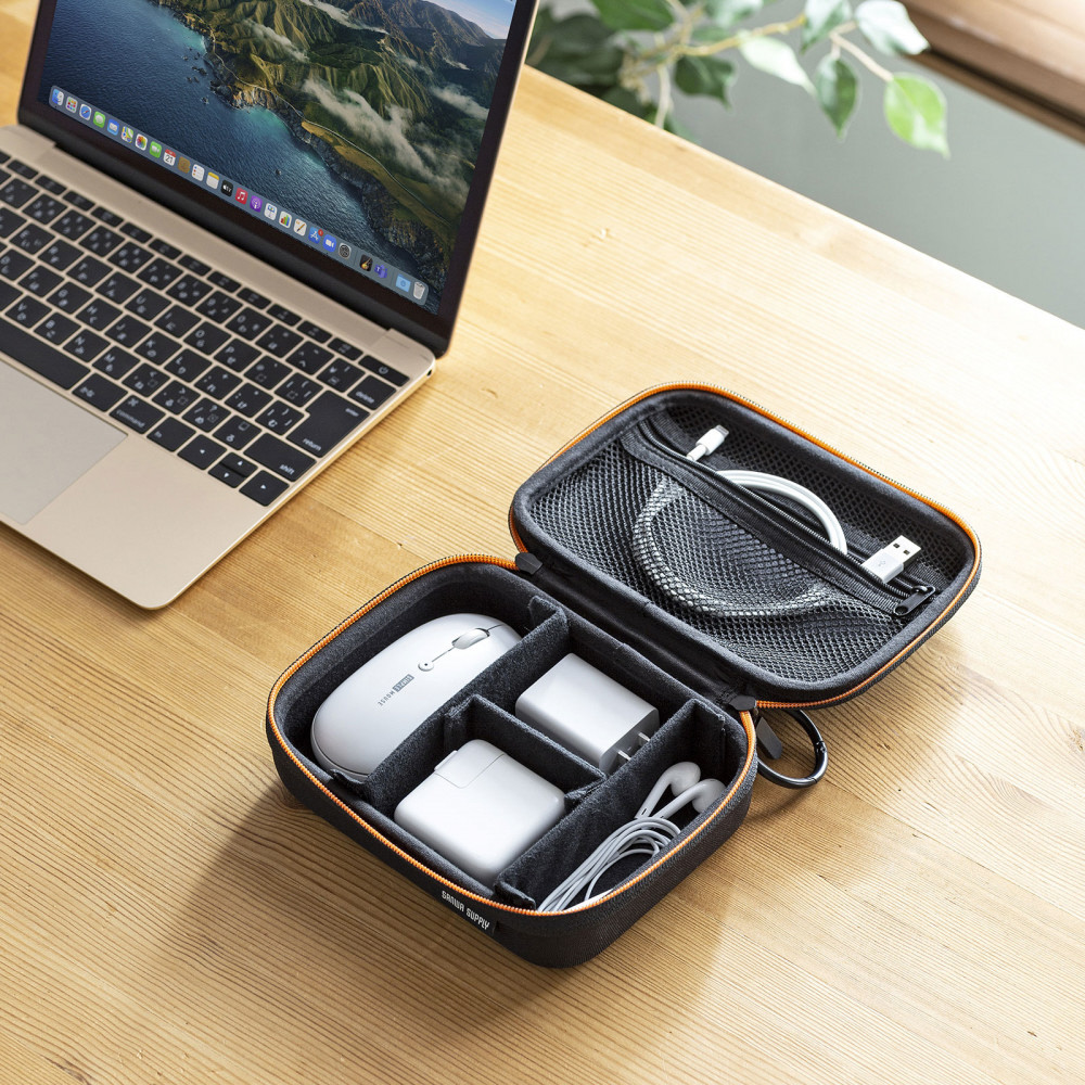 モバイルバッテリーやアダプタなどの小物をまとめてすっきり整理収納できるセミハードケース。Mサイズ。