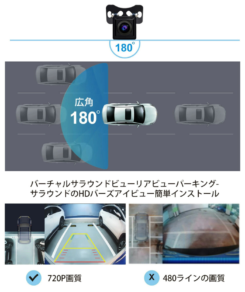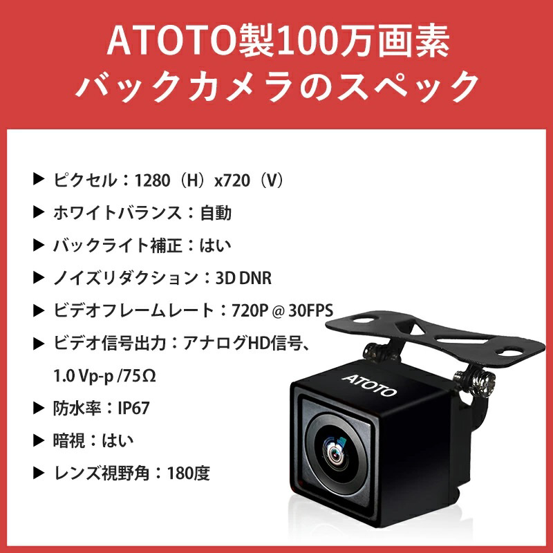 ATOTO AC-HD03LR 720Pリアビューバックアップカメラ 広角180°