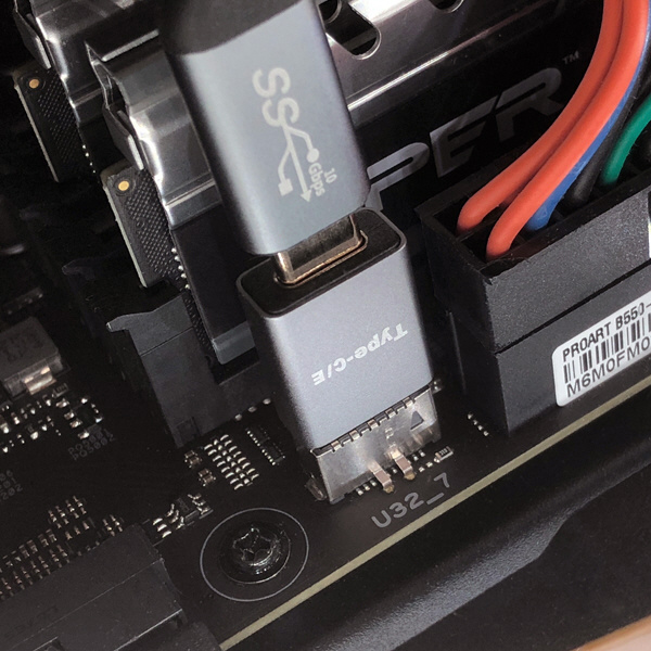 マザーのフロントパネルヘッダー(Type-E)をType-C Gen2/10Gbps へ変換するアダプターです。