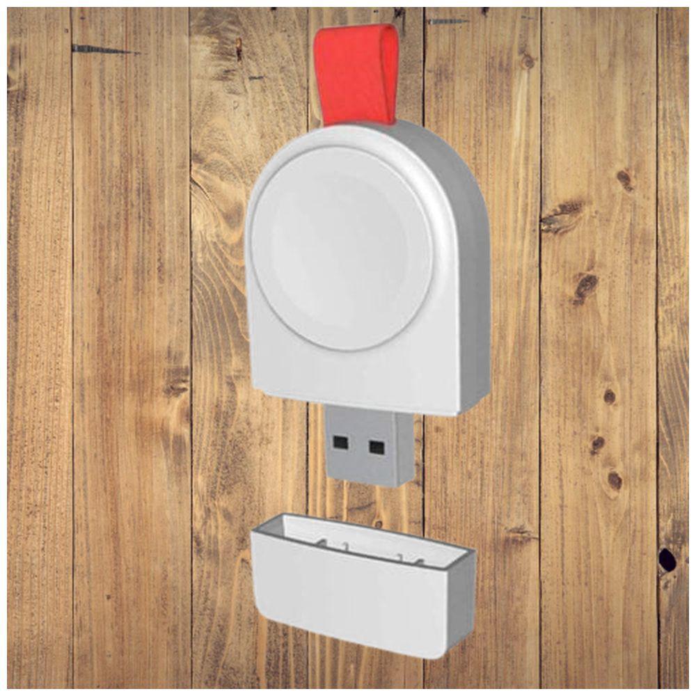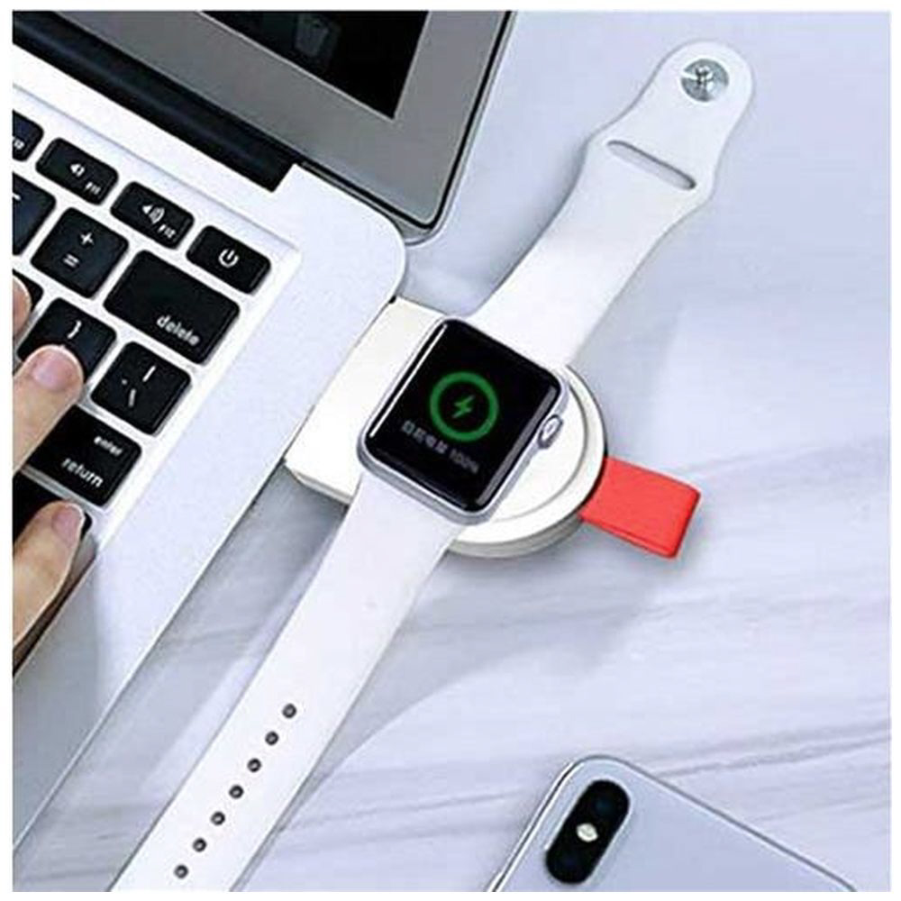 ■Apple Watchの充電残量は気にしがち、この充電器はビジネスや旅行先で使い勝手が良く、本体のUSBをノートPCやジャックに差し込むだけ。