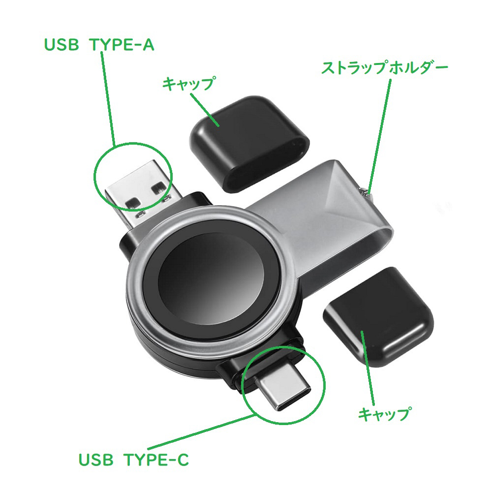 用途に合わせて色々、タイプCとUSBジャック(タイプA)がついて便利なApple Watchシリーズ対応の充電器です。