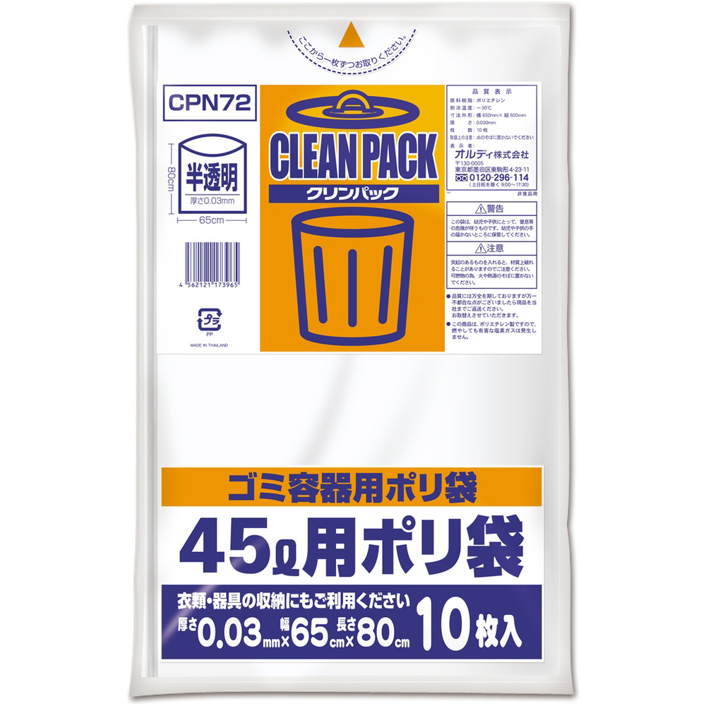 | 商品名 | ポリ袋 CLEAN PACK(クリンパック) 乳白 CPN72 [45L /10枚 /半透明] |