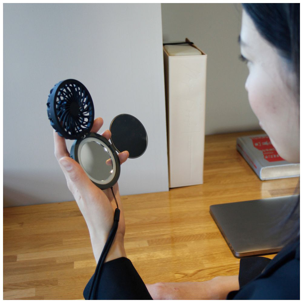 LED付きコンパクトミラーファン「ミラーファンビュラス」。