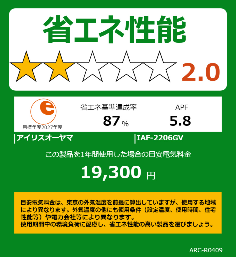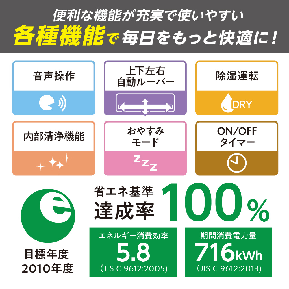 | 期間消費電力量 | 716kWh(JIS C 9612:2013) |