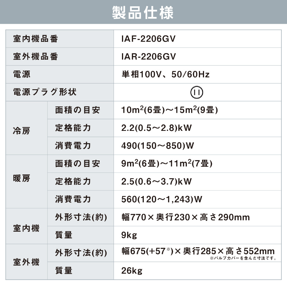 | 商品名 | IAF-2206GV [100V] 室内機(単品購入不可) |