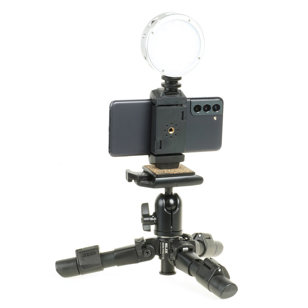 ホルダー部分にアクセサリーシューを使用して、LEDライトやマイクの取り付けが可能です。