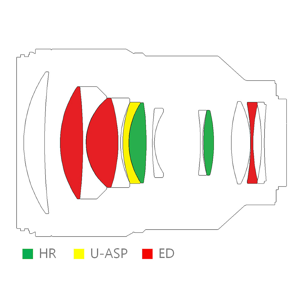13枚のレンズのうち6枚の特殊レンズを最適に配置する新たな光学設計。3枚の低分散ガラス(ED)で色収差と色にじみの効率的な補正で高解像を実現。 さらに高屈折ガラス(HR)2枚と超精密非球面レンズ(UA)で、画面の中心から周辺部まで一層鮮やかなシャープネスとコントラストを維持。さらに非球面レンズ表面を超精密研磨されたUA(Ultra-precision Aspherical)レンズを採用し、自然なボケ描写が楽しめます。超精密研磨されたUA(Ultra-precision Aspherical)レンズを採用し、自然なボケ描写が楽しめます。
