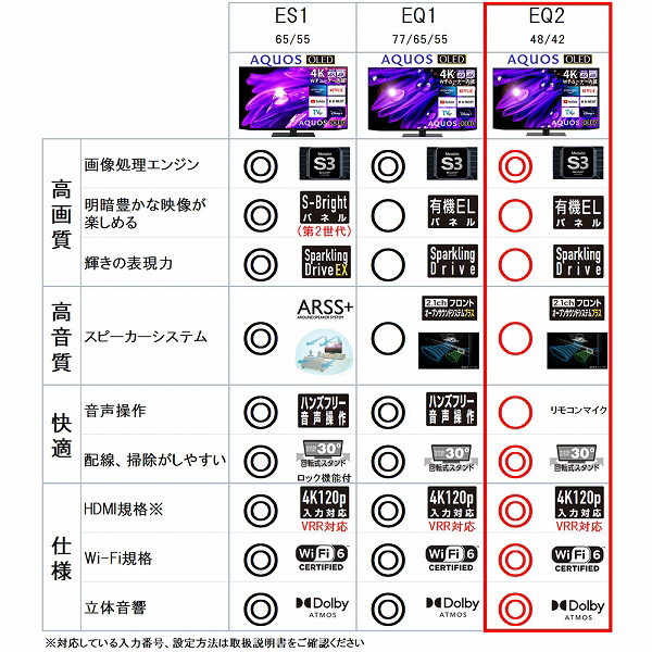 有機ELテレビ AQUOS(アクオス) 4T-C48EQ2 [48V型 /Bluetooth対応 /4K対応 /BS・CS 4Kチューナー内蔵 /YouTube対応]