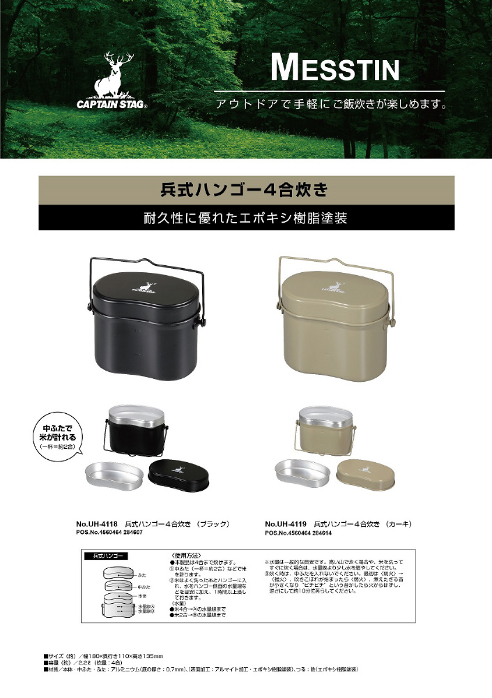 | 商品名 | 兵式ハンゴー4合(ブラック) UH-4118 ブラック UH-4118 |