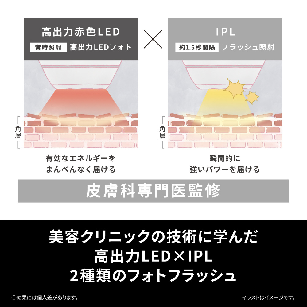 ■美容クリニックの技術に学んだ、高出力LED×IPL 2種類のフォトフラッシュ。(皮膚科専門医監修)
