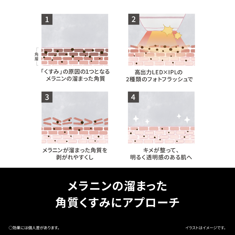 美容クリニックに学んだ高出力LED×IPLフォトテクノロジーで、角質くすみにアプローチ。(※1)