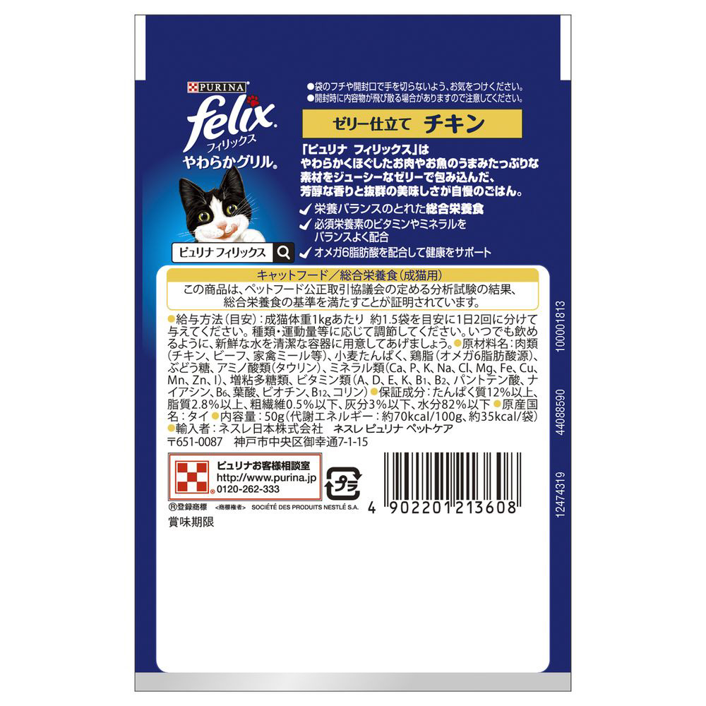 | 商品名 | felix(フィリックス)やわらかグリル 成猫 ゼリー仕立て チキン 50g |