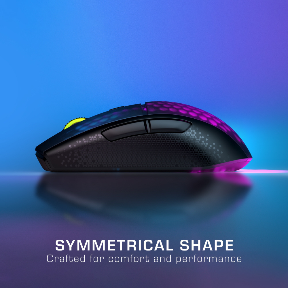 ROCCAT独自の左右対称形状、充実した機能セット、使いやすさとパフォーマンスをワイヤレスで実現。