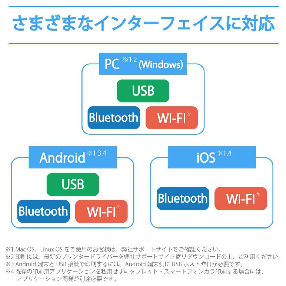 A4感熱紙対応の無線LAN、Bluetooth接続モデル。