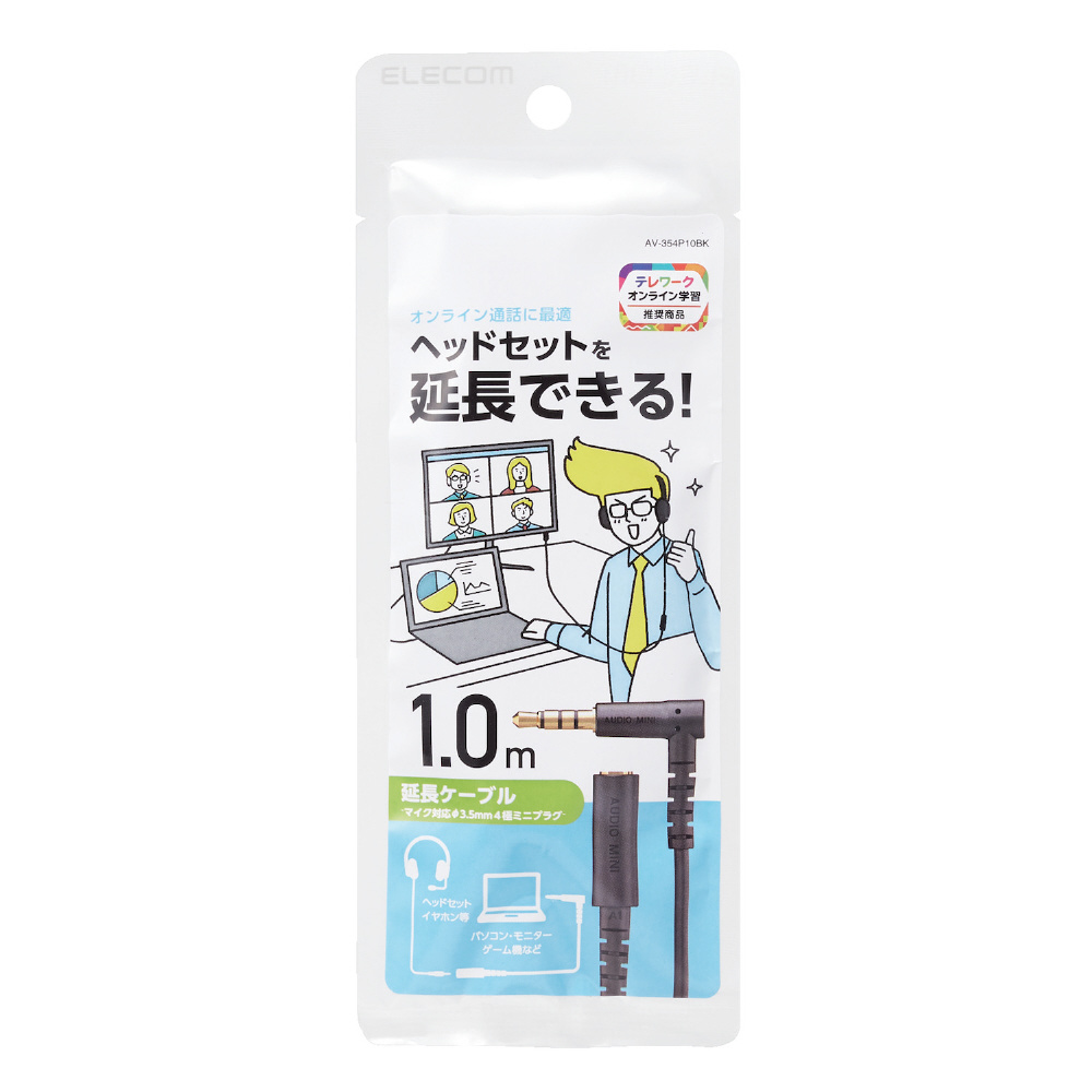 | 商品名 | 1m イヤホン ヘッドホン 延長コード マイク対応 3.5mmステレオミニプラグ ブラック AV-354P10BK |