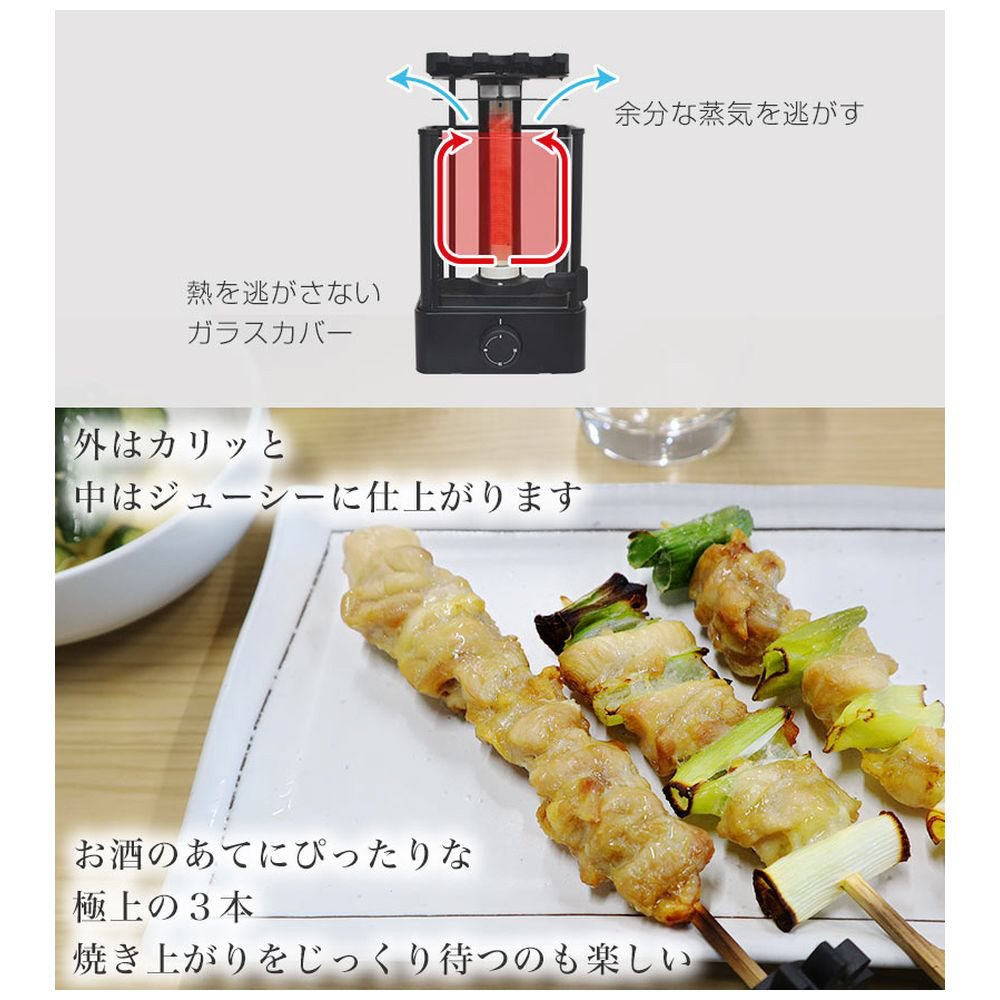 煙が出ないから卓上で使える1人用焼き鳥焼き機です。