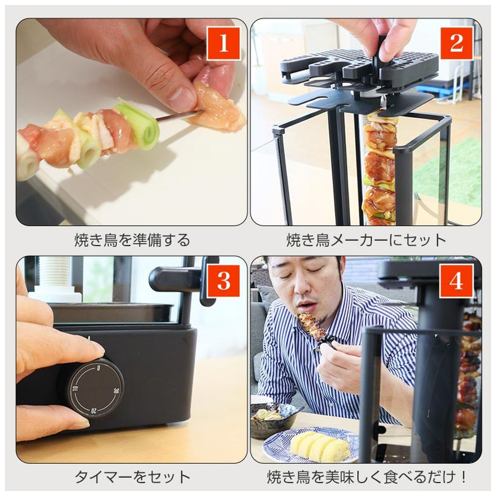 | 商品名 | まわって美味しい!無煙でうれしい!「おひとりさま用焼き鳥メーカー」 TK-MRG22B 【864】 |