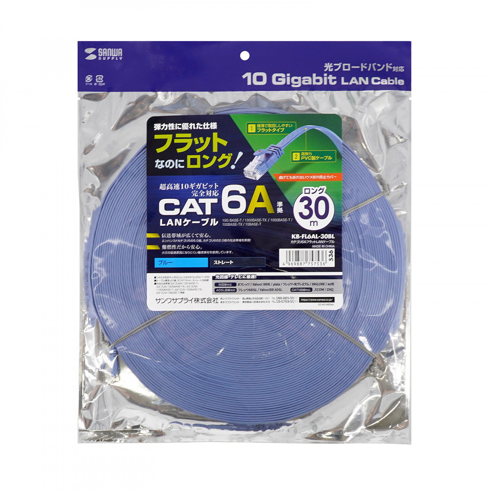 KB-FL6AL-30BL LANケーブル ブルー [30m /カテゴリー6A /フラット]