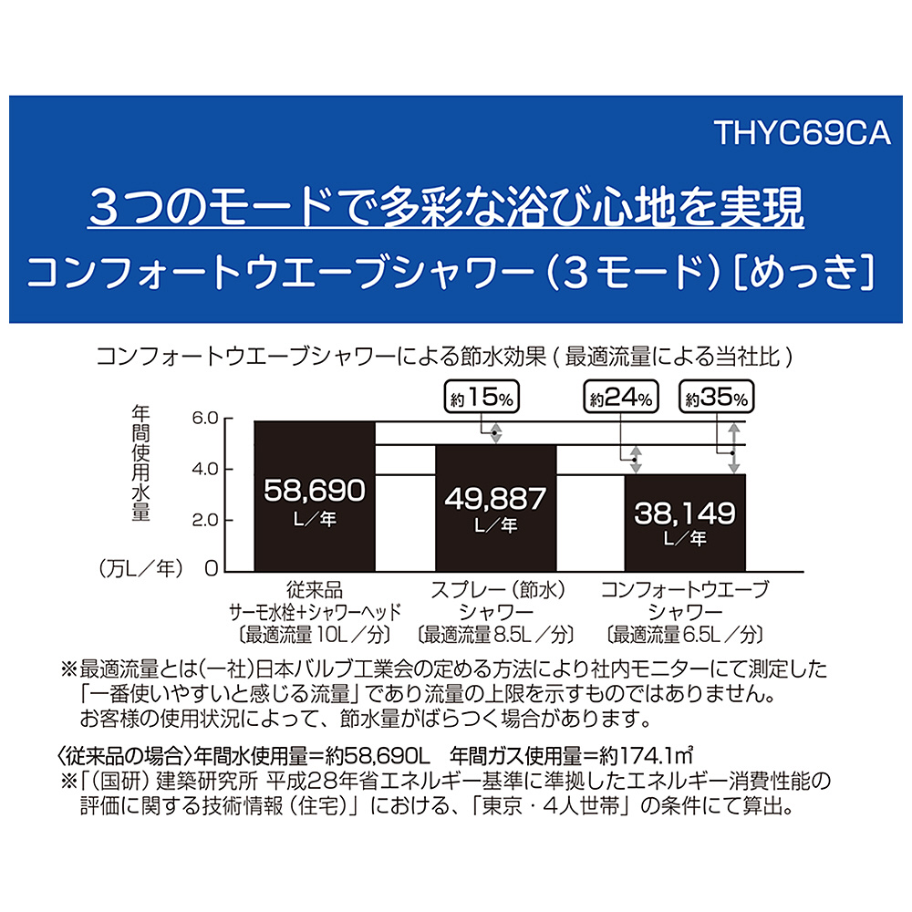 シャワーヘッド(コンフォートウエーブ3モード、めっき) THYC69CA