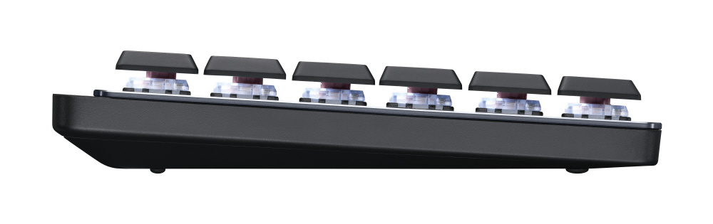 静音タクタイル(茶軸)は、確かな感触と精確なフィードバックを得られ、他のメカニカルキーボードと比較してとても静かで、リニア(赤軸)は、とてもスムーズな感触、素早い反応で流れるようなタイピングを可能に、クリッキー(青軸)は、メカニカルキーボード特有のタイプ音と満足度の高い確実な打鍵感を実現しています。