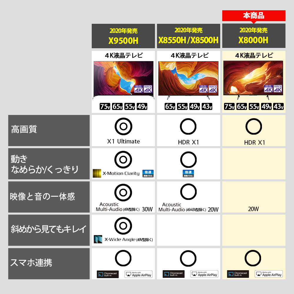 液晶テレビ BRAVIA(ブラビア) KJ-43X8000H [43V型 /4K対応 /BS・CS 4Kチューナー内蔵 /YouTube対応]【生産完了品】