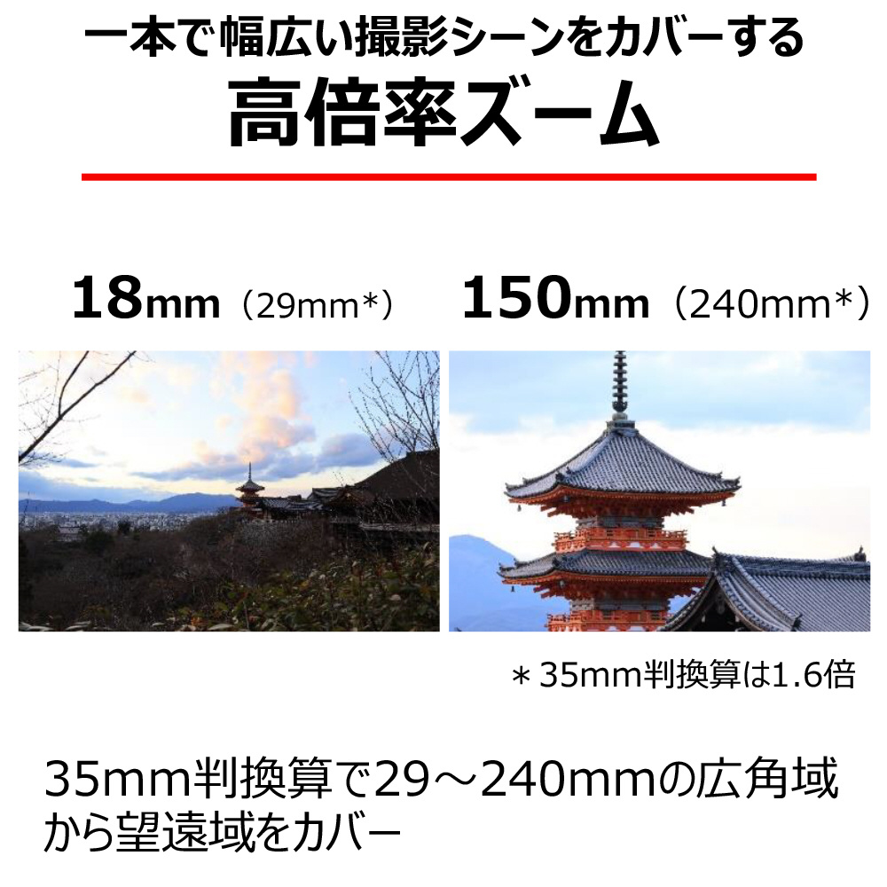 ・35mm判換算で29-240mm相当の広角域から望遠域をカバーする、光学約8.3倍の高倍率ズームと全長約84.5mm、質量約310gの小型・軽量設計を両立。日常での撮影から旅、スポーツ、鉄道など、多彩なシーンでの撮影に対応。