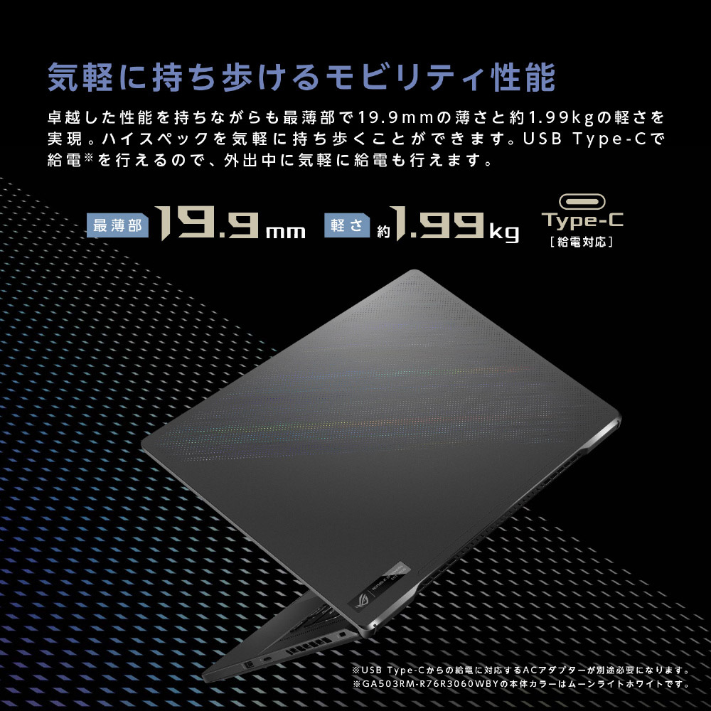 ゲーミングノートパソコン ROG Zephyrus G15 ムーンライトホワイト GA503RM-R76R3060WBY[RTX3060]