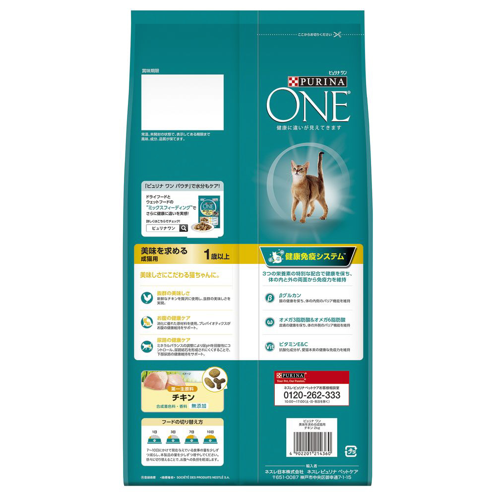 | 商品名 | PURINA ONE(ピュリナワン)キャット 美味を求める成猫用 チキン 2kg(500g×4袋) |