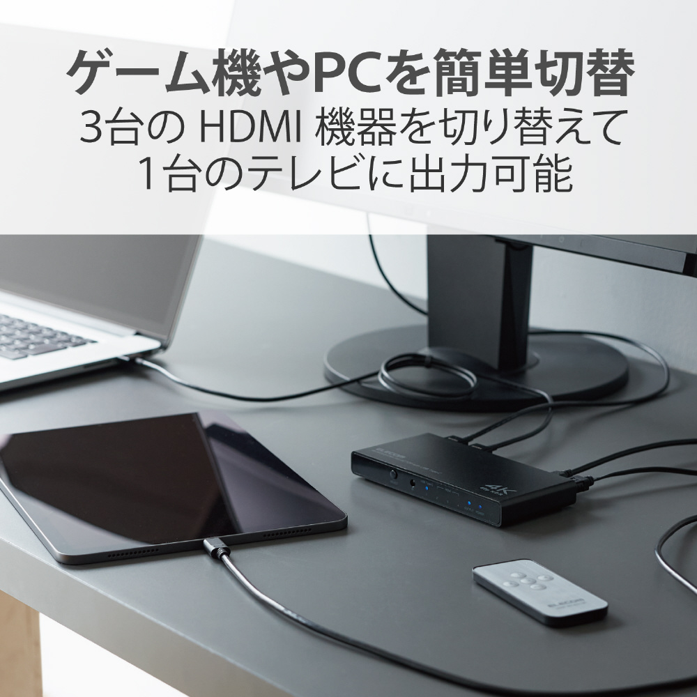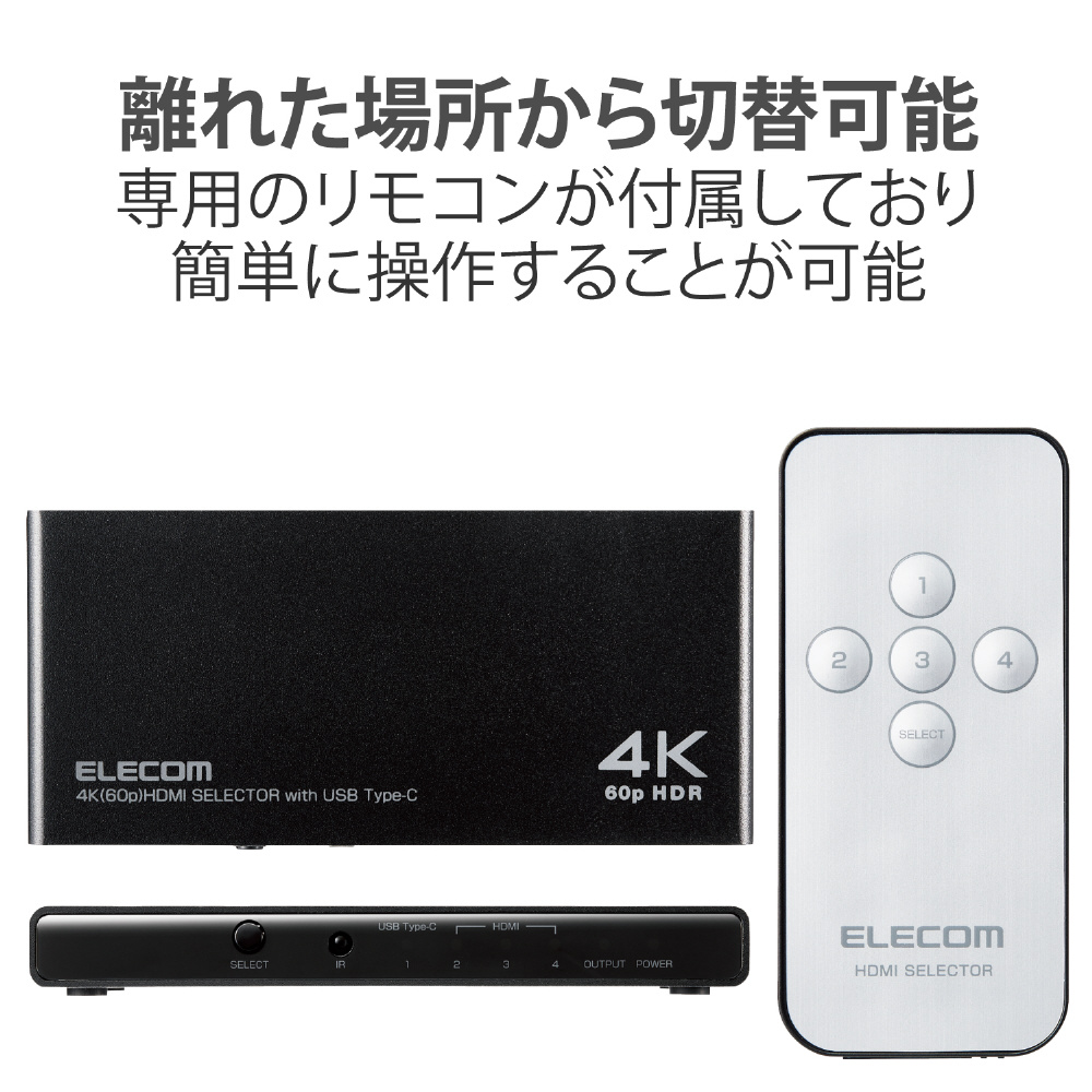 HDMI 切替器 Type-C×1入力 HDMI×3入力 1出力 4K 60Hz DH-SW4KC41BK [4入力 /1出力 /手動] 【864】