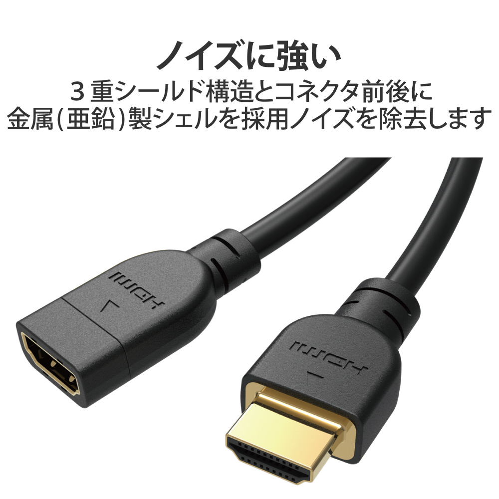 お手持ちのHDMIケーブルの長さが足りないときや、配線済みのケーブルを活用したい場合に便利なHDMI延長ケーブルです。
