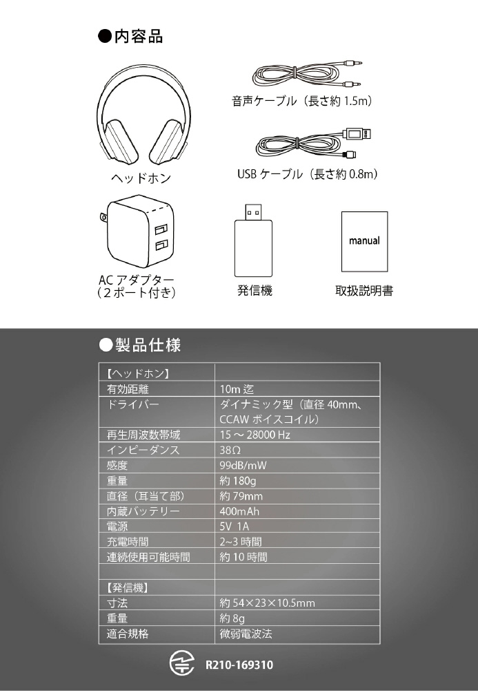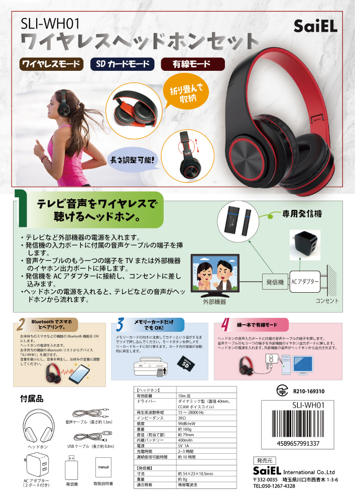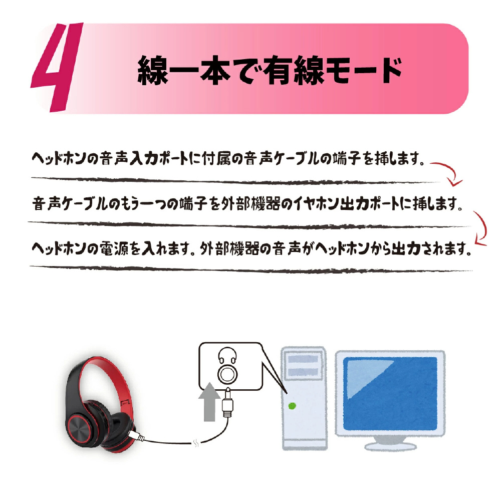 ワイヤレスヘッドホン Bluetooth接続 テレビ音声ワイヤレス メモリーカード Mp3再生 有線モード 各種対応ヘッドホン