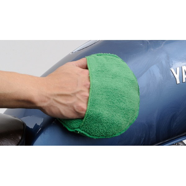 ●丸形のマイクロファイバースポンジで指先が入るポケット付き。スポンジがあることで車体に傷をつけず、均一に力をかけやすくなっており、曲線が多いバイクのワックスがけやコーティングの施工に最適です。