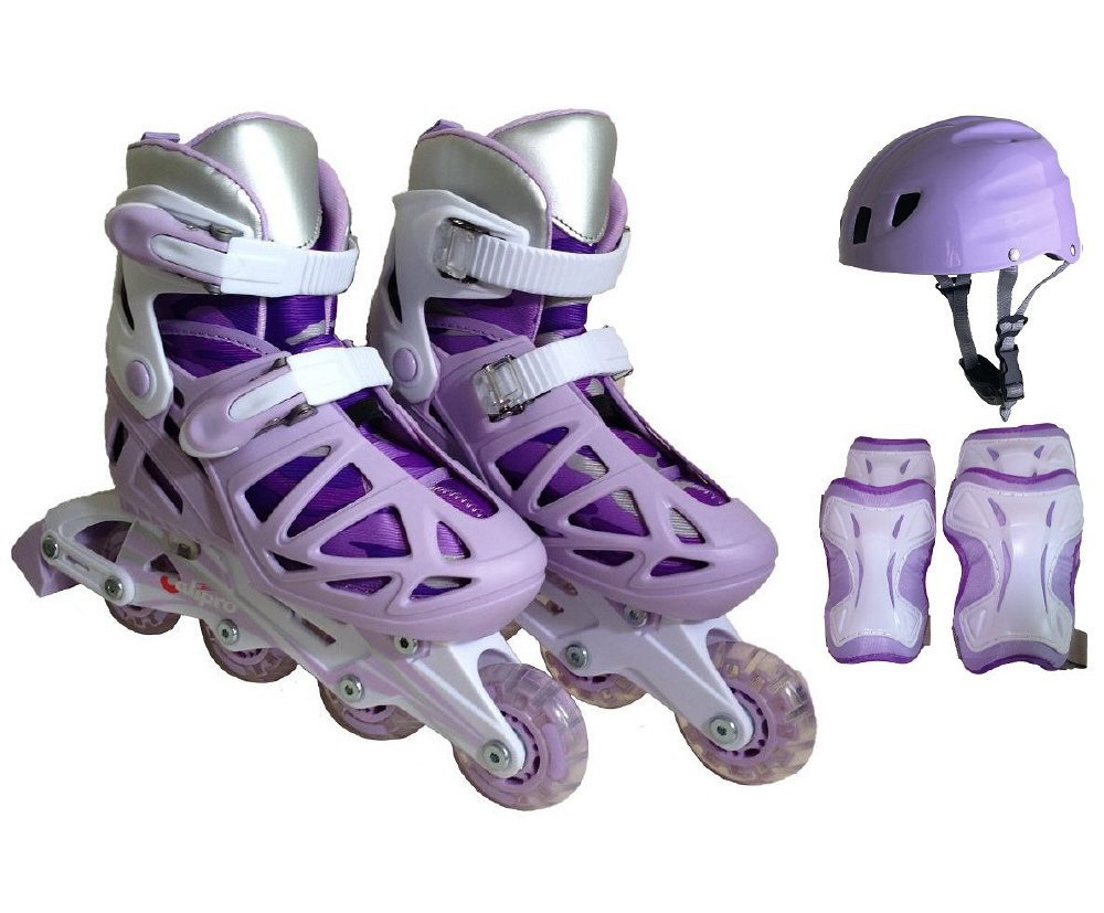 インラインスケート本体とヘルメット・プロテクターのコンボセット。