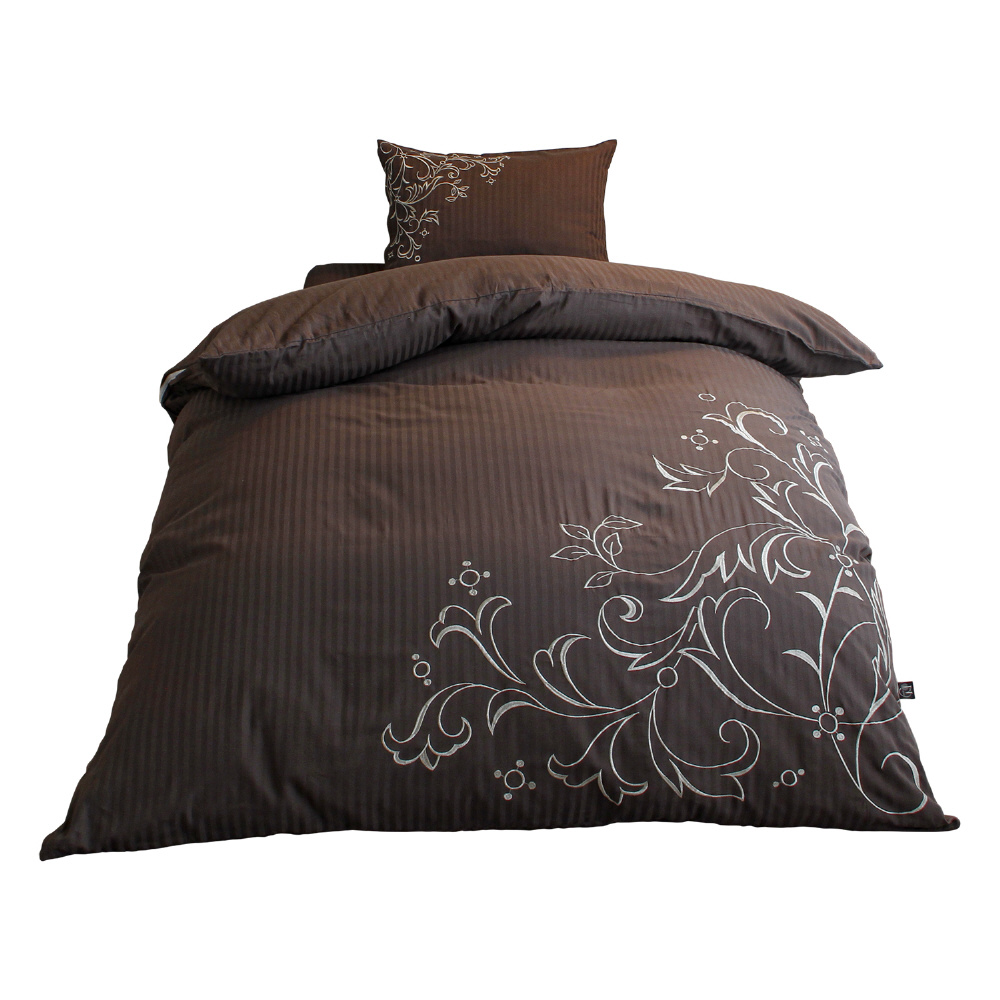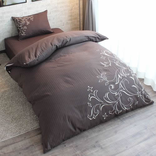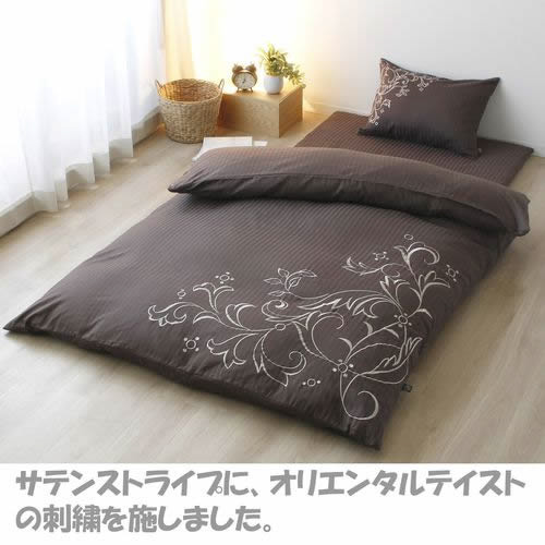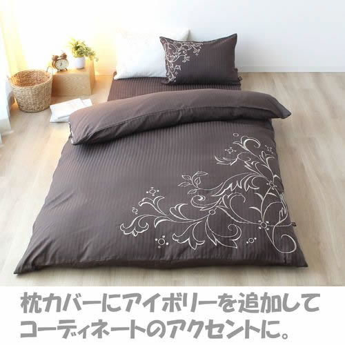 メリーナイト 掛け布団カバー inico (イニコ) 「クレール」 ブラウン ダブルロング 約190×210cm 綿100% サテン織ストライプ 刺繍入り 上品な光沢感 洗える IN26051-93 ブラウン IN26051-93 [ダブルサイズ]