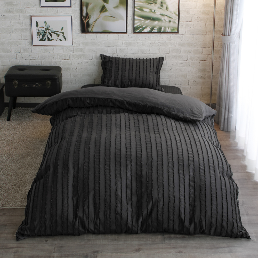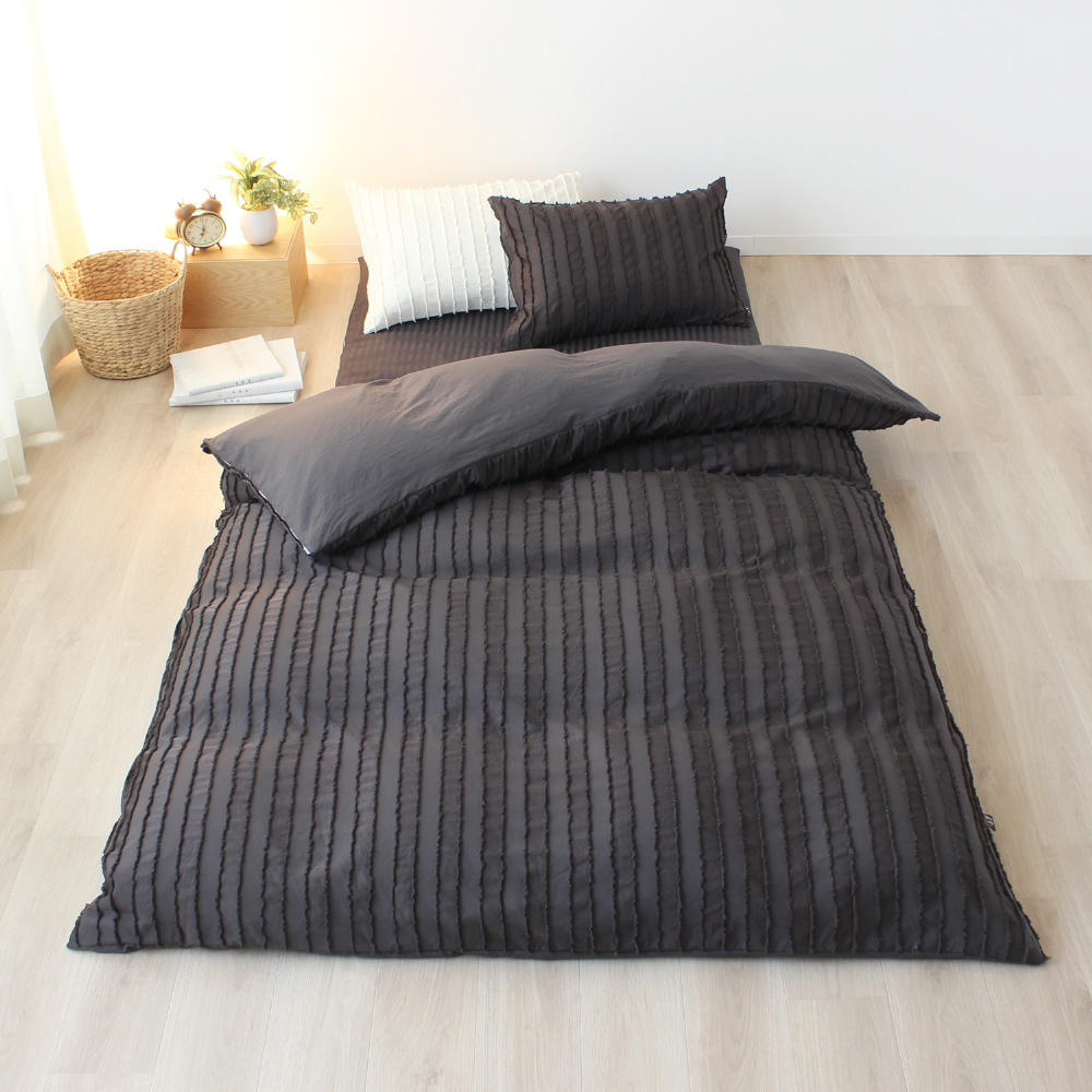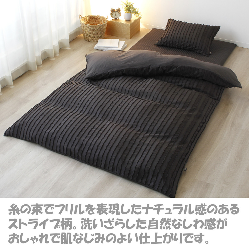 メリーナイト 掛け布団カバー inico (イニコ) 「プリュイ」 チャコールグレー シングルロング 約150×210cm 洗いざらし カットフリル シンプル 洗える IN24053-02 チャコール IN24053-02 [シングルサイズ]
