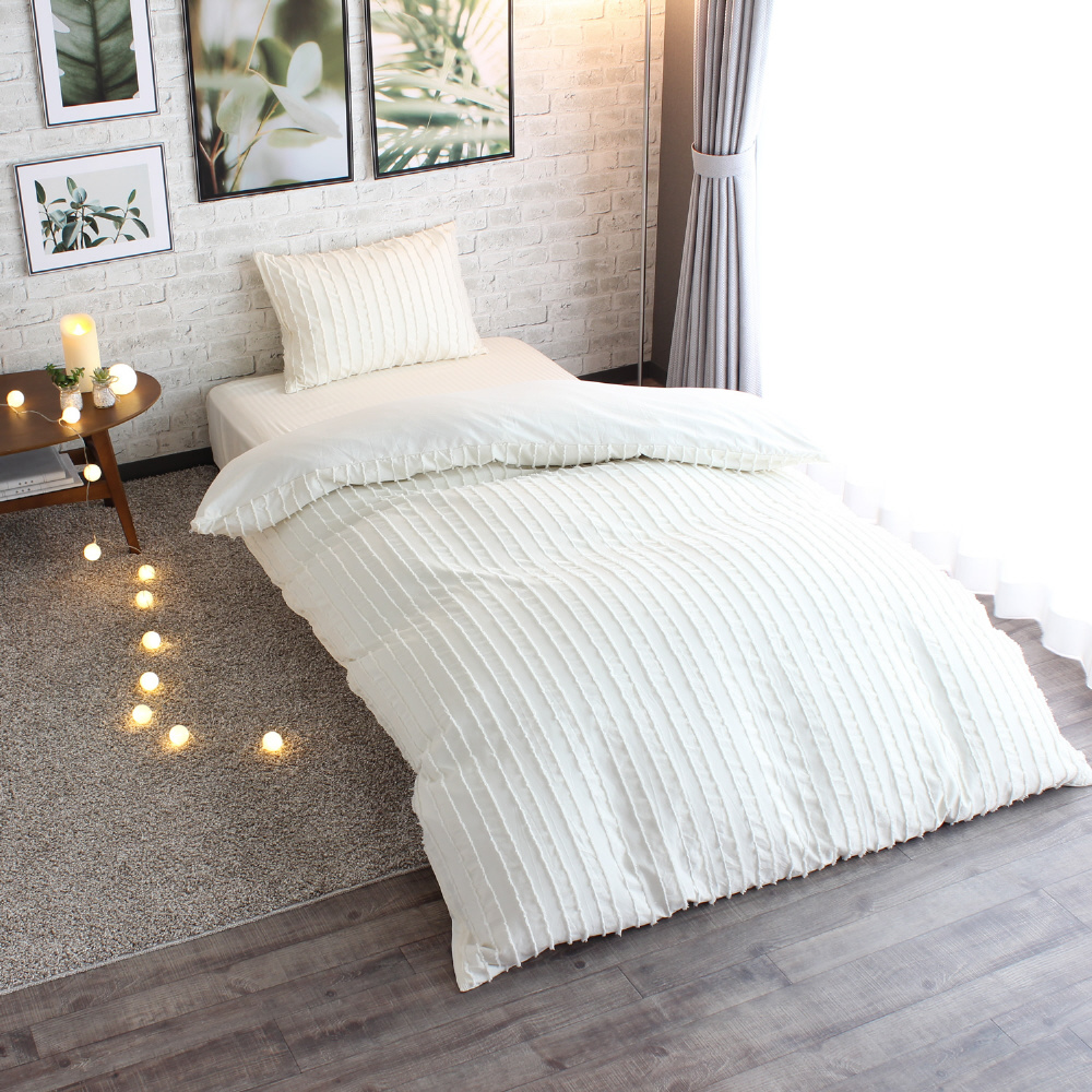 メリーナイト 掛け布団カバー inico (イニコ) 「プリュイ」 アイボリー シングルロング 約150×210cm 洗いざらし カットフリル シンプル 洗える IN24053-07 アイボリー IN24053-07 [シングルサイズ]