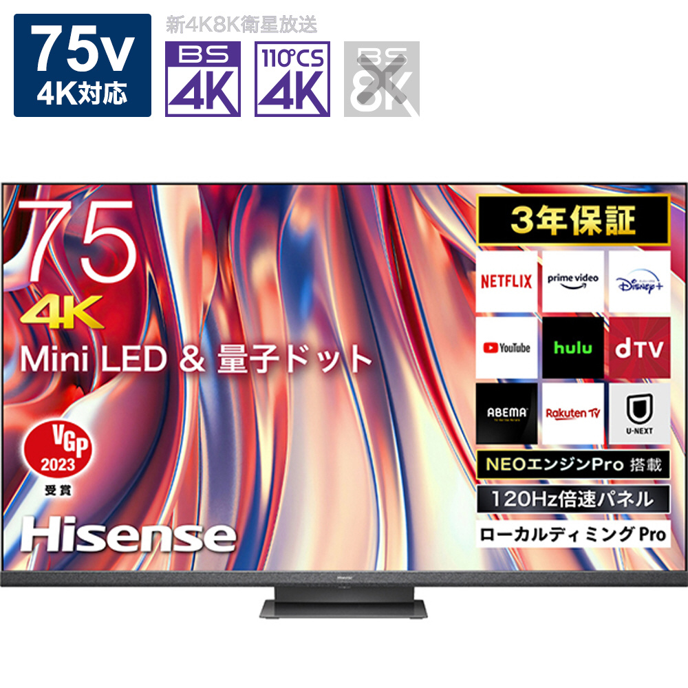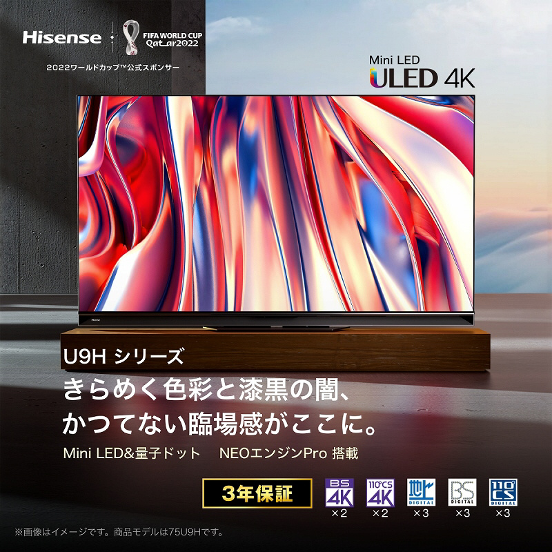 | 商品名 | Mini LED4K液晶テレビ 75U9H [75V型 /Bluetooth対応 /4K対応 /BS・CS 4Kチューナー内蔵 /YouTube対応] |