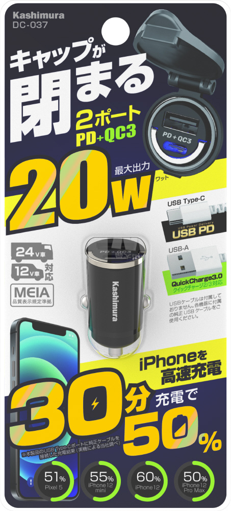 ■車のDCソケットのキャップが閉まる超コンパクト設計。