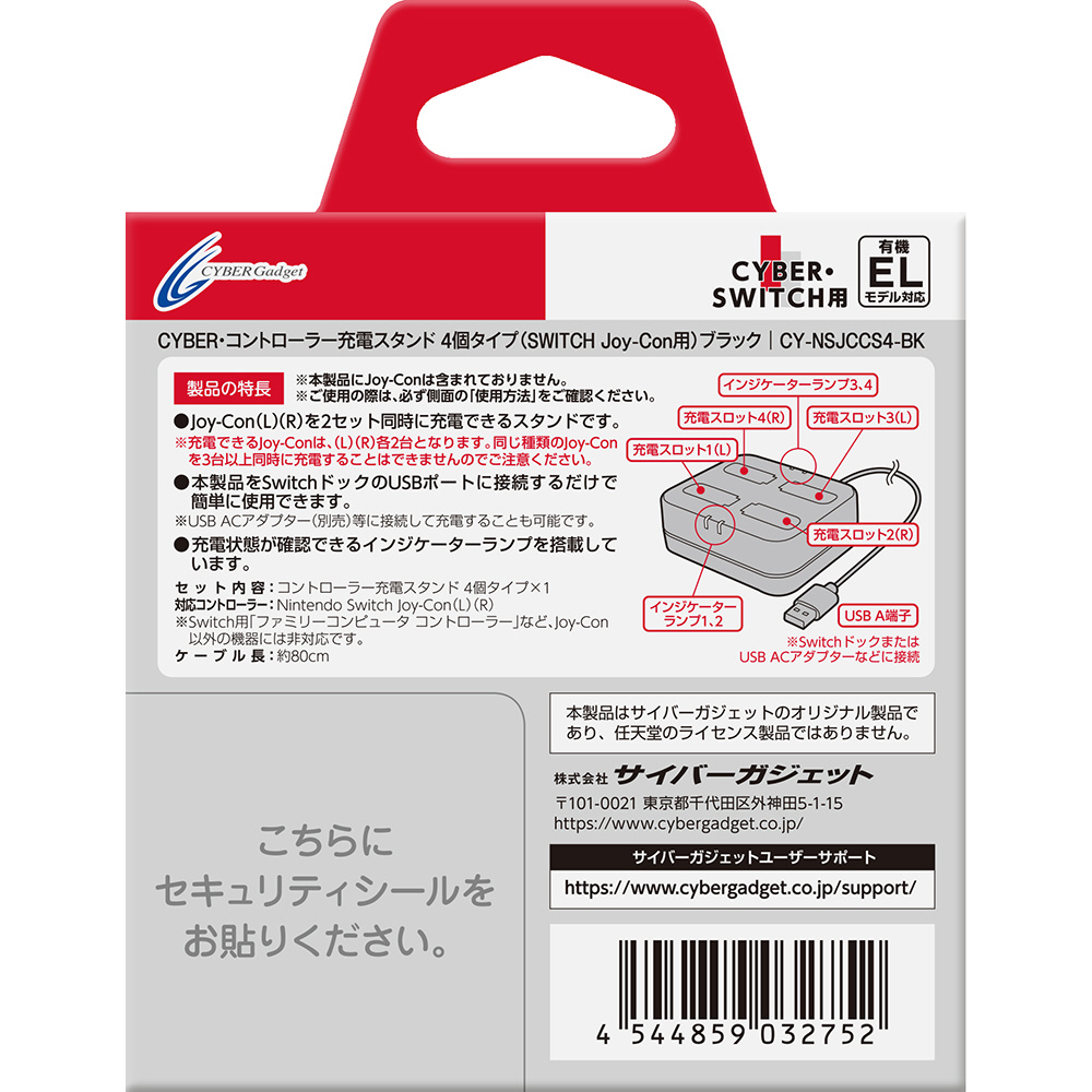 | 商品名 | SWITCHJoy-Con用コントローラー充電スタンド4個タイプ ブラック CY-NSJCCS4-BK |