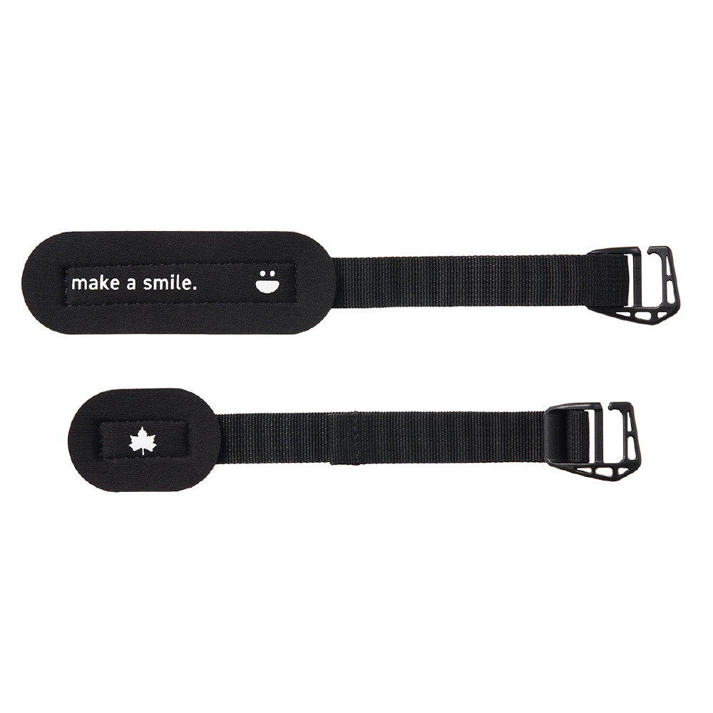ベルクロ仕様の2本のベルトをつなぎ合わせ、アジャスターで長さ調整が可能。