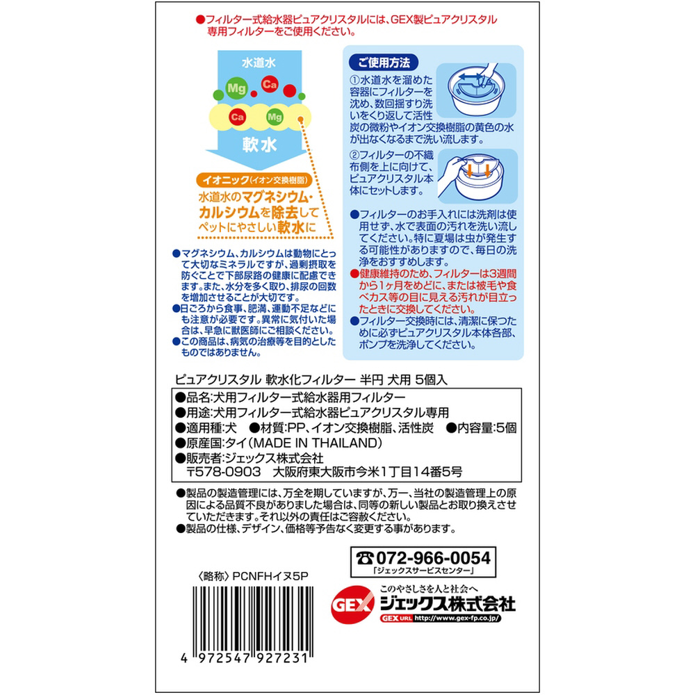 | 商品名 | ピュアクリスタル 軟水化フィルター 半円 犬用 5個入 |