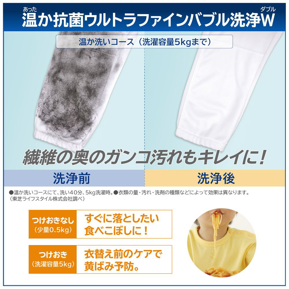 食べこぼしや泥汚れなど気になる汚れを落としてから追加の衣類を投入できます。