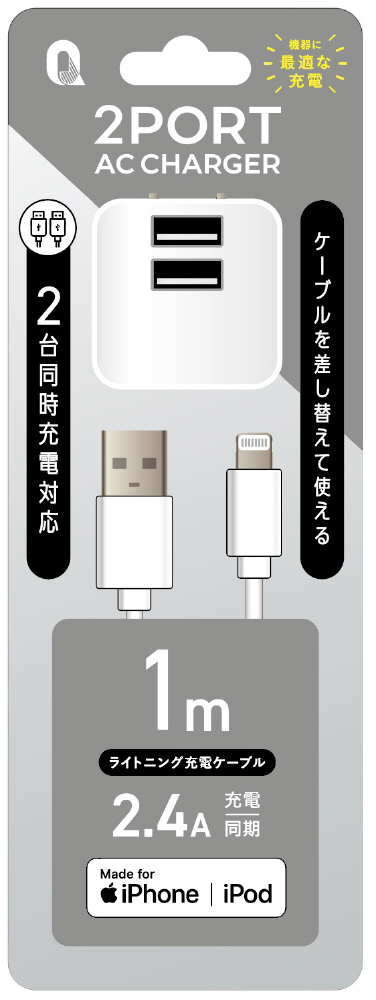 2ポートAC+ライトニングケーブル NEW ホワイト QL-029NWH 【864】