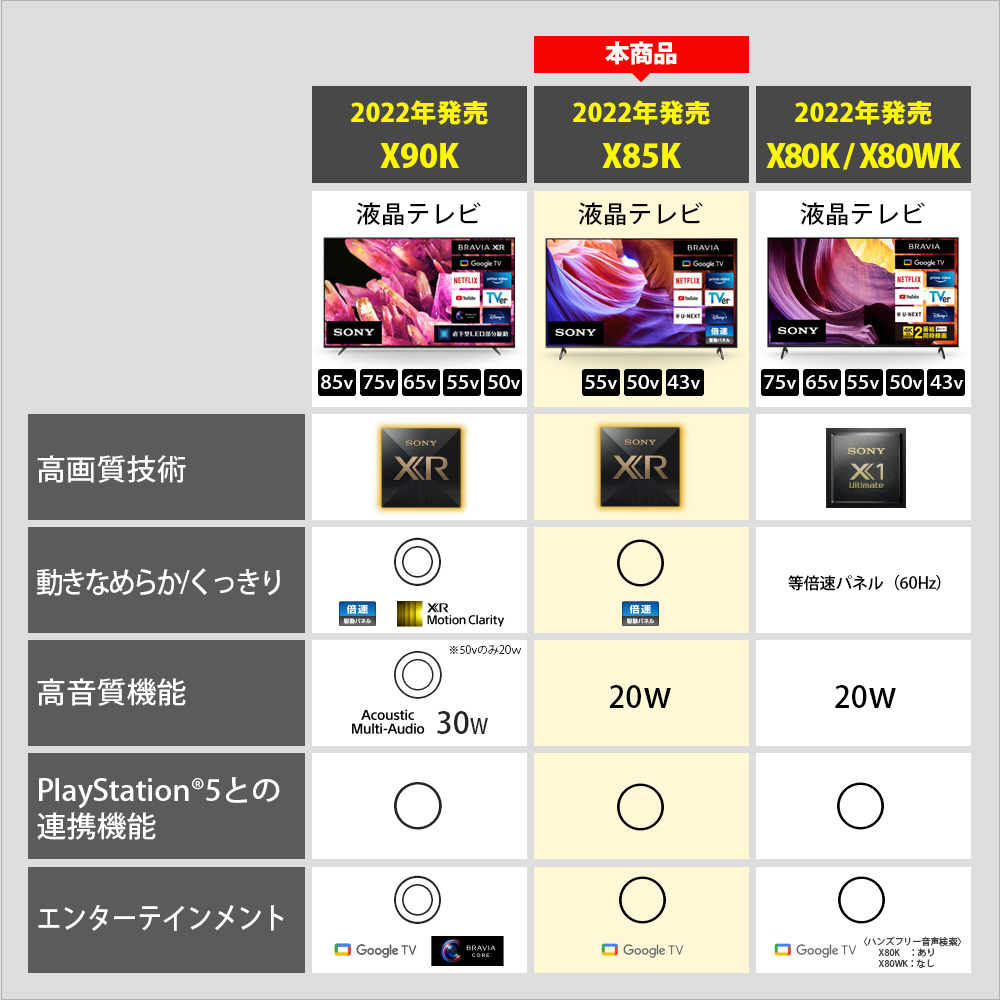 液晶テレビ BRAVIA(ブラビア) KJ-50X85K [50V型 /Bluetooth対応 /4K対応 /BS・CS 4Kチューナー内蔵 /YouTube対応]