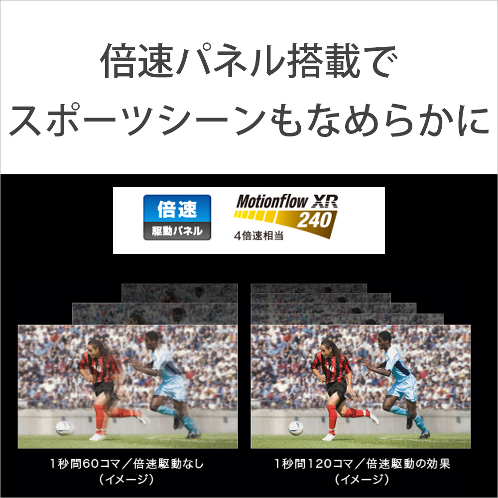 倍速駆動パネルを搭載。さらに、フレームごとにLEDバックライトの発光を制御し、残像感を低減。速い動きもなめらかに表現します。