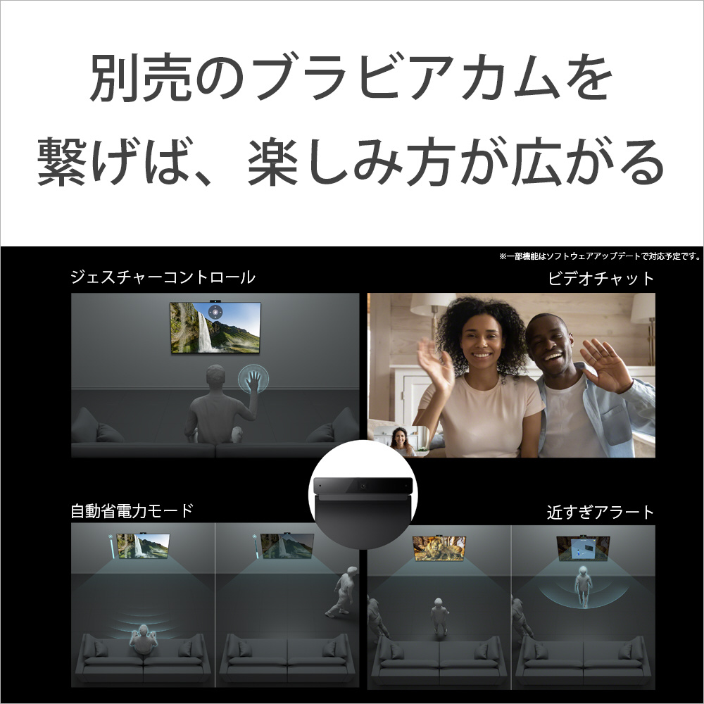 別売りのブラビアカムを繋げば、大画面でのビデオチャットやジェスチャーコントロール(*)といった、新しい楽しみ方が広がります。