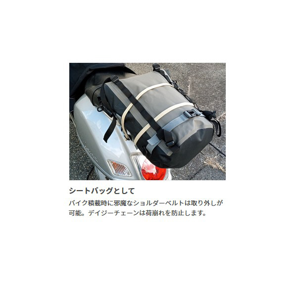 バイク積載時に邪魔なショルダーベルトは取り外しが可能。デイジーチェーンは荷崩れを防止します。