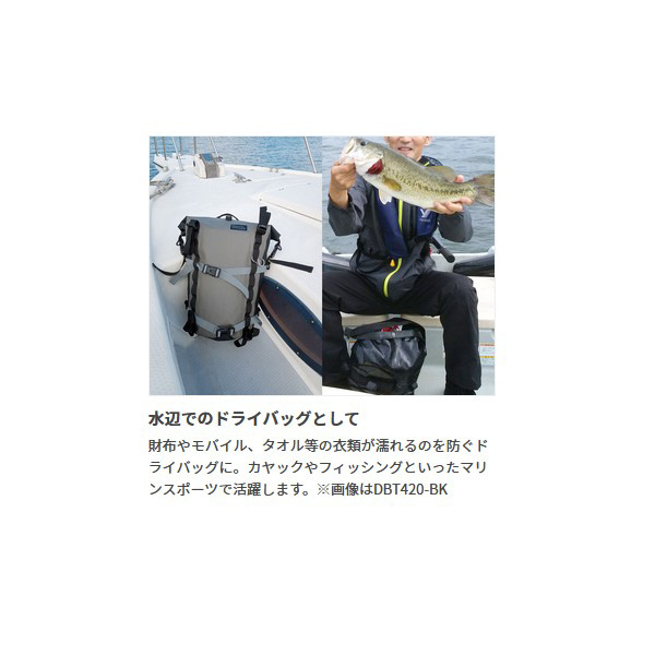 財布やモバイル、タオル等の衣類が濡れるのを防ぐドライバッグに。カヤックやフィッシングといったマリンスポーツで活躍します。